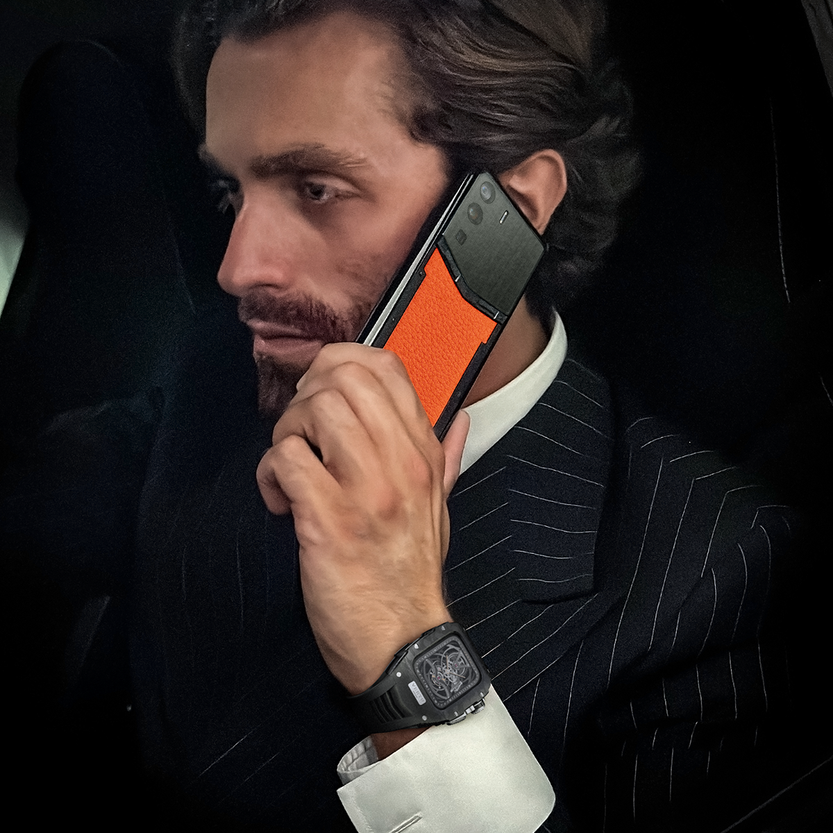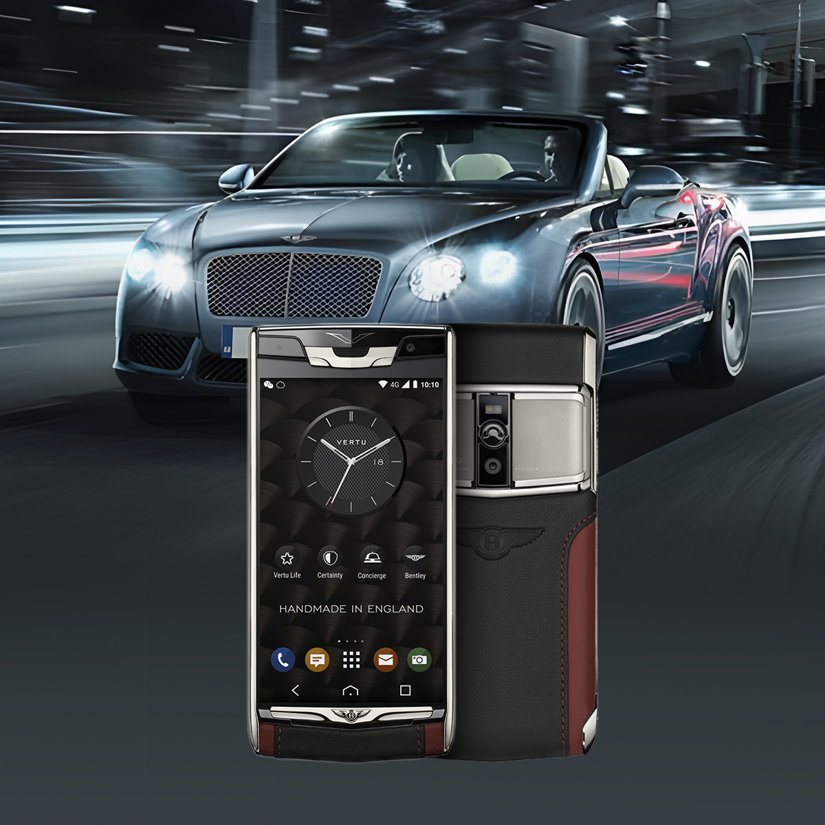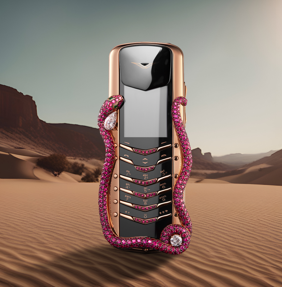 VERTU ASCENT’s Racetrack Legends series would not have been complete without a collaboration with Ferrari.The front of the phone boasts the Ferrari prancing horse logo. The rear sports a scaled down model of the iconic aluminium accelerator pedal.With the famous Ferrari roar for a ringtone plus a rear cover antenna in authentic steering wheel leather, this is sports car suavity in pocket size.